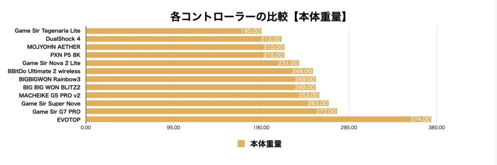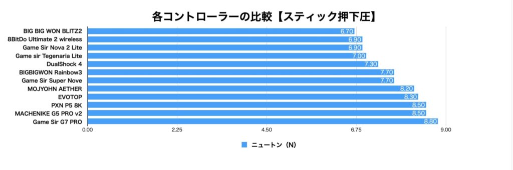 各種計測値を僕の持っているコントローラーと比較してみました。