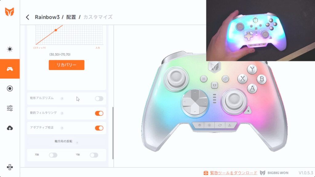 基本的にここに乗っている設定で、十分な項目数だと思います。キャリブレーションもできるし、追加ボタンにマッピングもできる。ABXYとかの追加ボタン以外に、自分好みにマッピングしたいとかマクロの登録も細かく煮詰めたい、あとはスティックの反応曲線もいじりたいならソフトウェアは必須。でもそうじゃないなら十分かな?