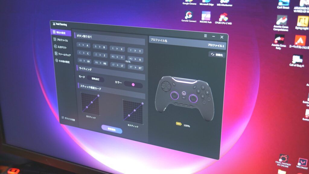 ソフトウェアに関しては野良ソフトウェアになるんで気になる人は多いと思う。ジャイロとかマクロとかの細かい設定はこれが必須になる。ただね、普通に使う分にはソフトウェアを導入しなくても使えます。追加ボタンの設定ももちろんできるし、スティックのデッドゾーンもON/OFFできる。なんで野良ソフトっていう点が気になる方は、本体のみでの運用をオススメします。
