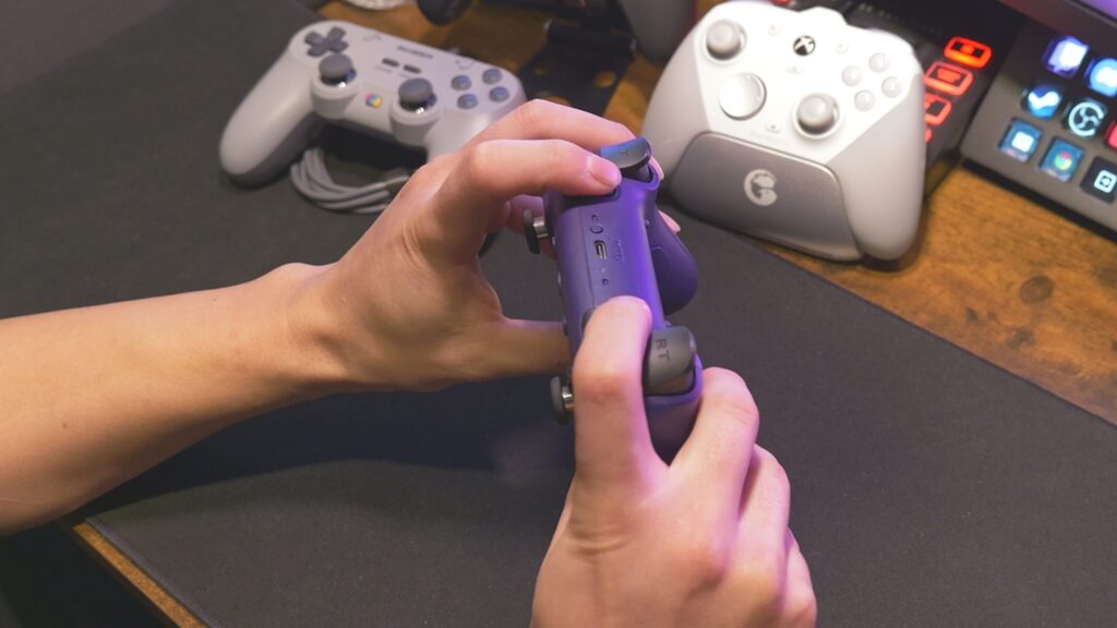 背面だけじゃなくバンパーにも追加ボタンがあるんで拡張性の高さがあるこちらのG7 Pro。とにかくスティックから親指を離さずに素早く操作したいというガチ目のゲーマーには非常にオススメできるコントローラーですね。Amazonでも手に入るしね。
