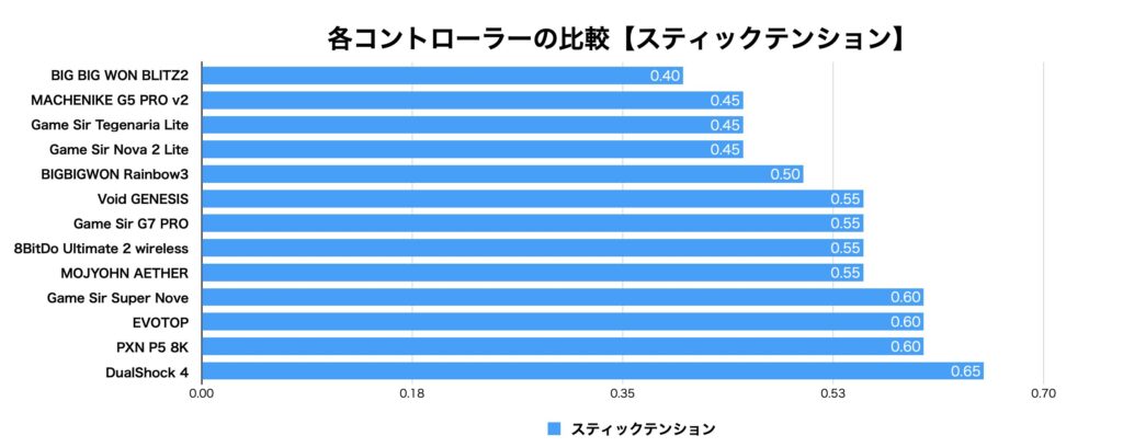 計測値は変動しますが、10回計測した中央値を掲載してます。このコントローラーはPCで使う人が多いと思うけど一応全部計測しました。まぁ、あくまで参考までに。