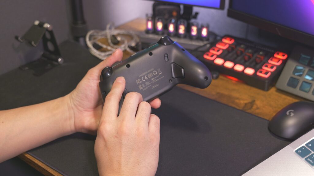 追加ボタンは全部で6個。フェイスボタンの右下に2つ、バンパーに2つ、背面に2つの計6個。あとファンクションボタンも入れると10個だね。発表された時に、「ABXYの右下にボタンあるのは邪魔じゃないかな?」って思ってたけど全然問題ないです。誤爆の心配はないかな。
