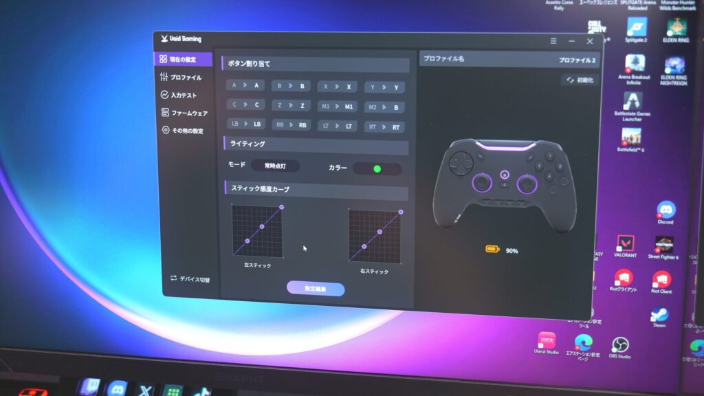 でもこのコントローラーはマジで1回見て欲しいし手に取って欲しい。マジでカッコイイから。カッコイイし操作も違和感ないし、設定も豊富だし最高です。コントローラーを買ってきて1番買興奮してるかもしれない。これを使いたくてゲームするまであるよマジで。こればっかり使いますね絶対。