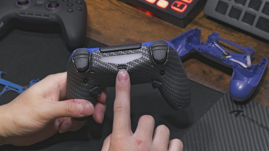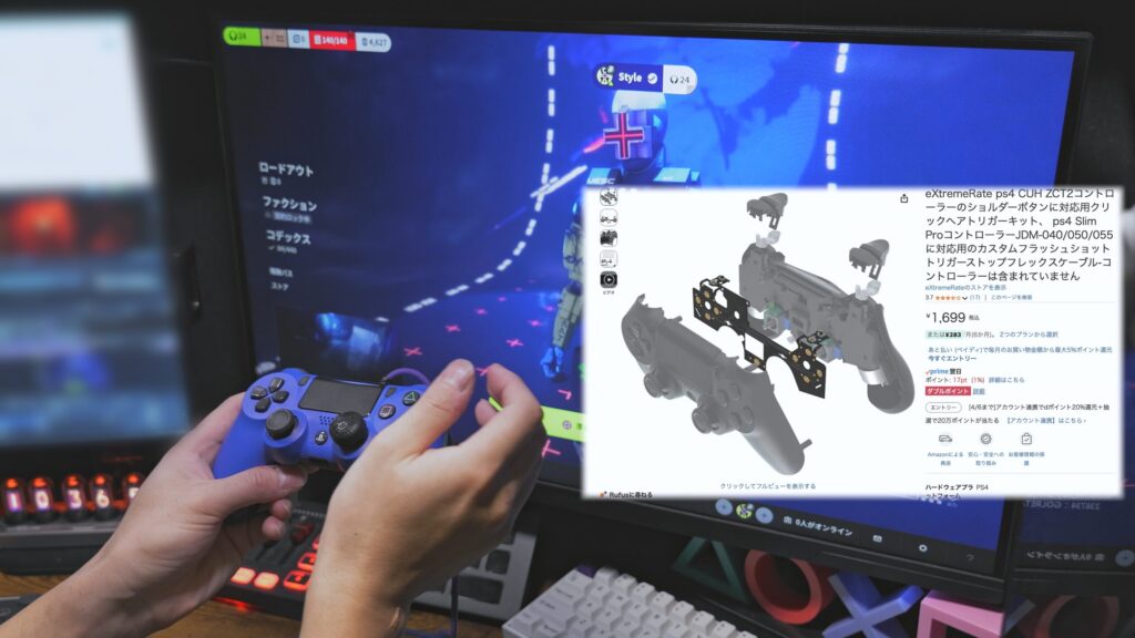 3つ目はこれですね、追加ボタンが少ない。モンハン持ちができるから良いとは言ったけど、しなくて済むならしたくない派なので…追加ボタンがあと2つは欲しいと言ったところです。スティックから指を話すタイミングが多くなると反応が少し遅れるので、モンハン持ちをしてるけどやっぱりエイムが安定するのはしっかりグリップを持ってる状態…。背面4ボタンならそれが叶うので、4ボタンにしたい。