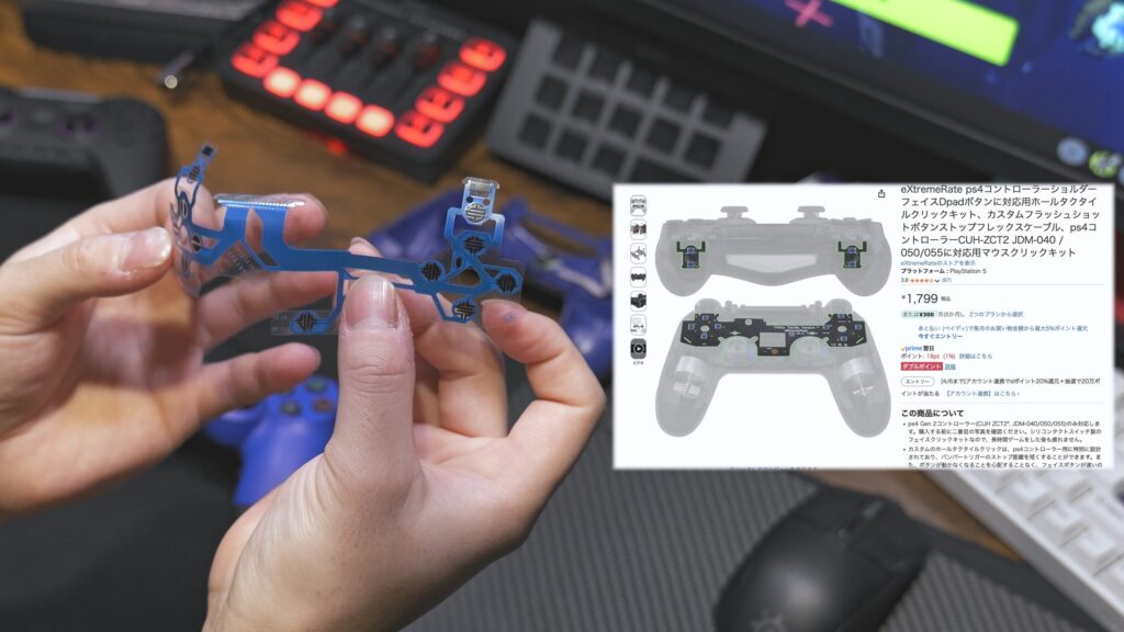 次はパーツが豊富っていうところですね。もちろん自分でパーツが作れるとか基盤作れるって人はいいかもしれない。でも大多数はそんなことできないですよね?でもUSB端子をType-Cに変えれるキットがあったり、背面ボタン追加とか、ボタンをクリックタイプにするとかしたくなった時に数千円で変えれます。そのままメンブレンでも良いんですが、やっぱりトリガーはボタンタイプにしたいんですよね。そんな時に探せばあるのがPS4とかPS5の純コンです。まぁXboxでもありますけどね。僕はPS配置が好きなのでこっち。